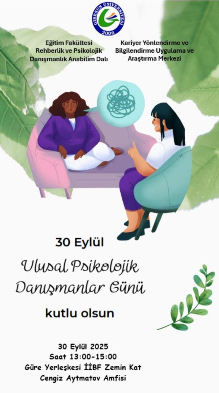 Üniversitemizde, Kariyer Yönlendirme ve Bilgilendirme Uygulama ve Araştırma Merkezi ile Psikolojik Danışmanlık ve Rehberlik Anabilim Dalı iş birliğiyle düzenlenen program kapsamında 30 Eylül Ulusal Psikolojik Danışmanlar Günü kutlandı.
